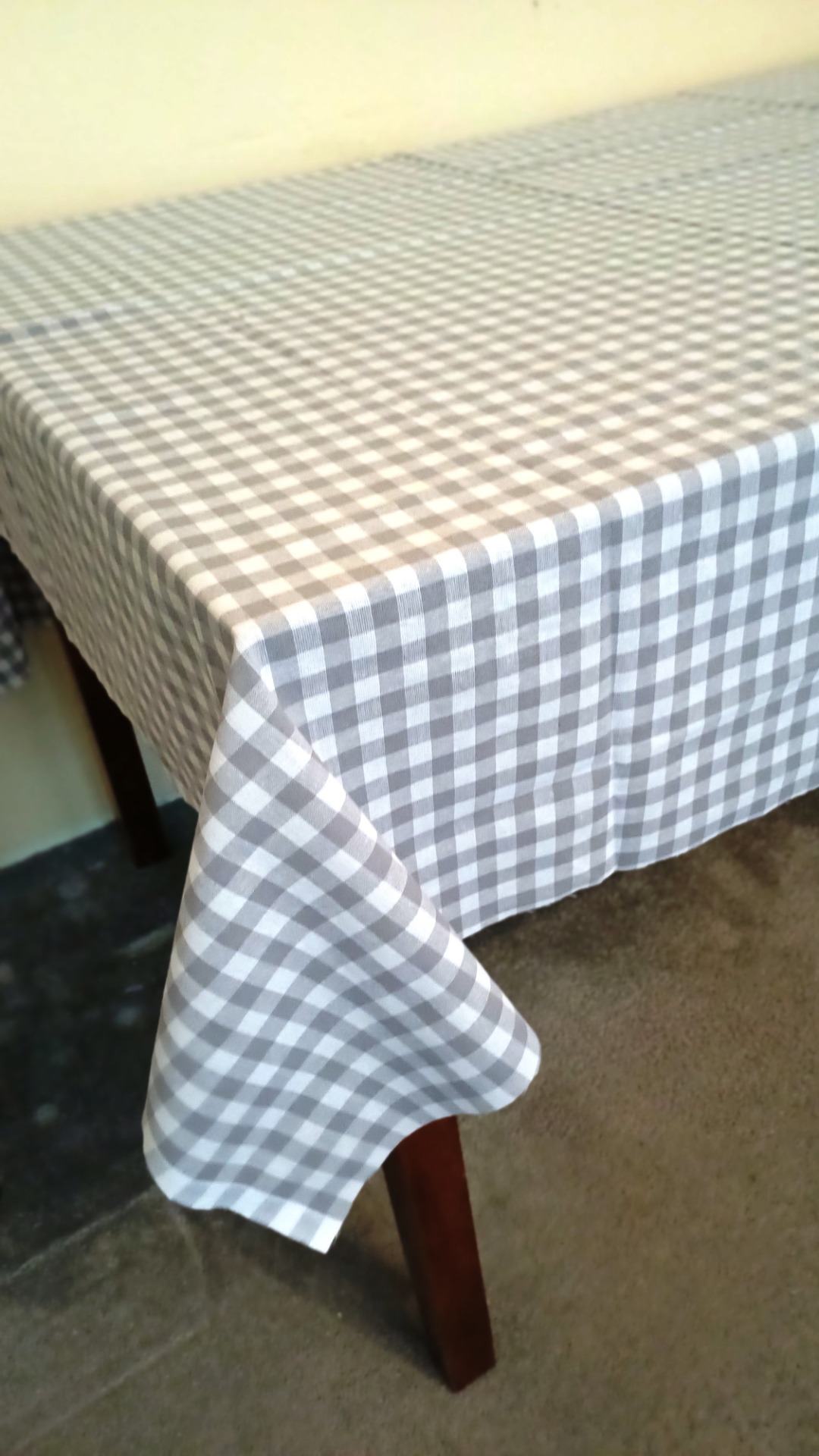 Ubrus ze 100% bavlny, pestře tkaný, šedá kostka 1x1 cm, rozměr ubrusu 120x120